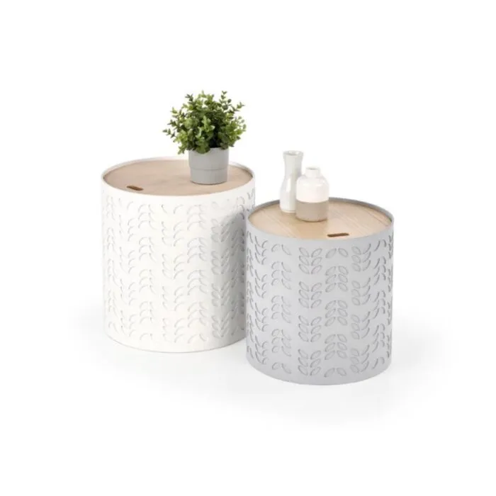 Set 2 klubskih mizic BRIGITA, je narejen iz MDF. Klubska mizica Brigita je kvalitetna ter stabilna in primerna za vsako dnevno sobo ali teraso. V kompletu sta 2 mizici, kot je prikazano na sliki. Mizici imajo opcijo shranjevanja različnih stvari, saj se mizna plošča lahko dvigne, v notranjosti pa je predal.