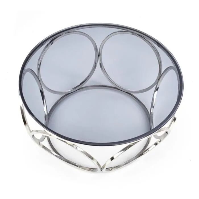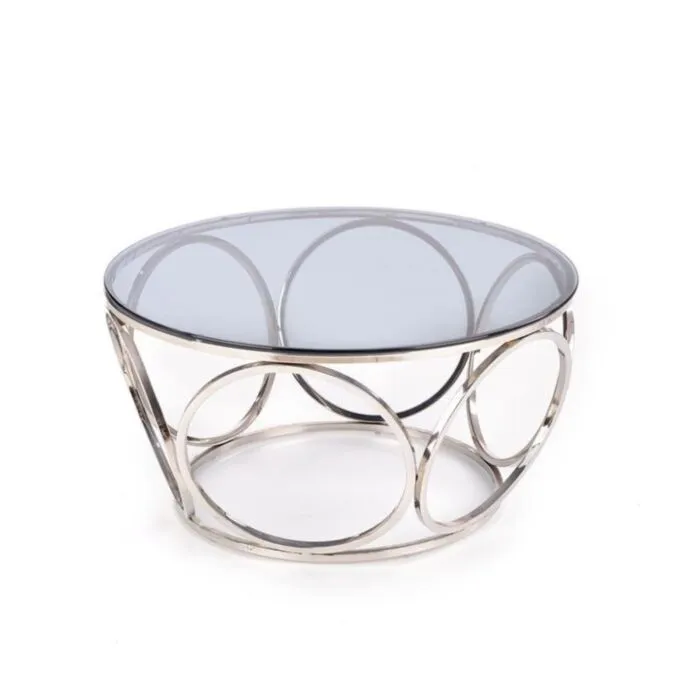 Klubska miza DALIJA z njeno elegantno in posebno obliko bo popestrila vse dnevne sobe. Mizna plošča je okrogla in narejena iz stekla. Podnožje mize je iz kovine v srebrni barvi. Dobavljiva je v barvi kot na sliki.