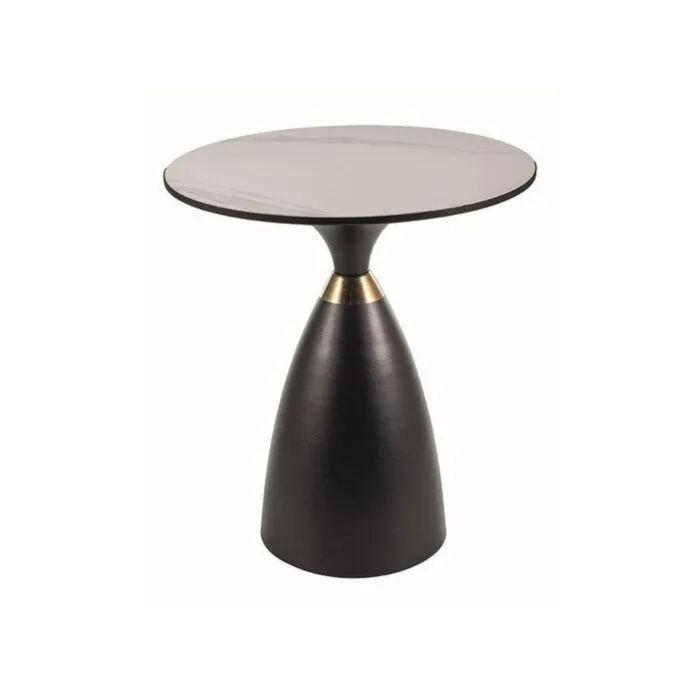 Klubska miza GELI je modernega dizajna. Mizna plošča je narejena iz keramike v videzu marmorja, bele barve. Mizno podnožje je narejeno iz kovine v črni mat barvi, z detajlom v videzu brušenega zlata.