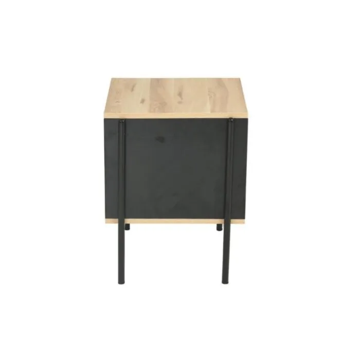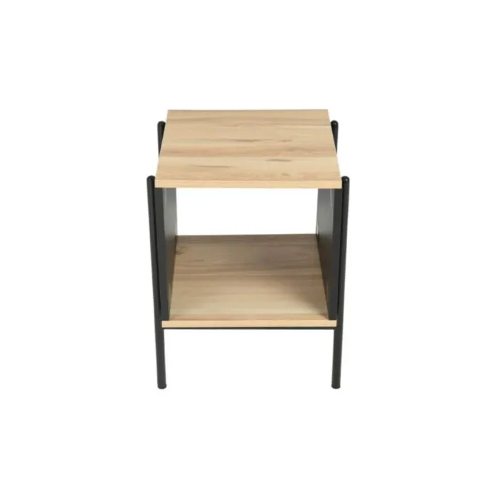 Moderna klubska mizica KARLAS – 40 x 40 x 51, je zelo kvalitetna in stabilna. Mizna plošča je narejena iz MDF-ja. Podnožje mizne plošče je narejeno iz kovine. Klubska mizica je primerna za vsako dnevno sobo. S svojo eleganco in obliko popestri vsak prostor. Mizica je v barvi hrast s kombinacijo črne mat.
