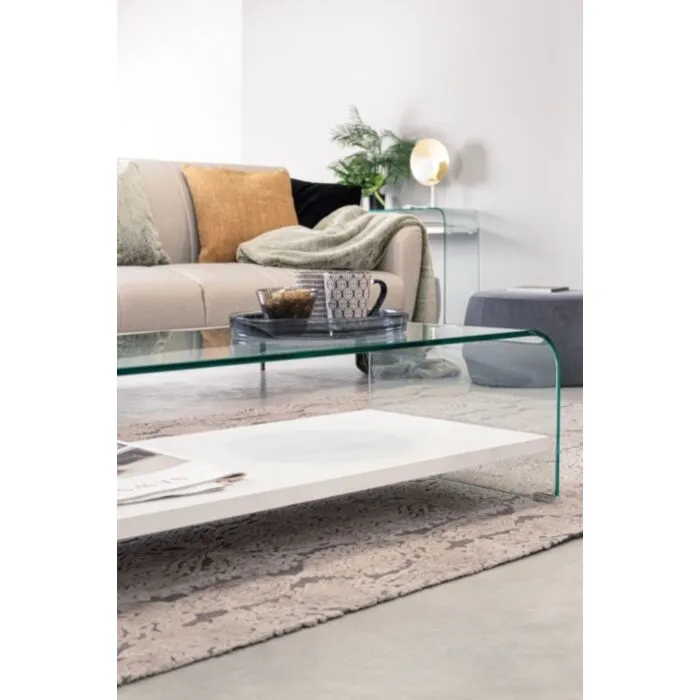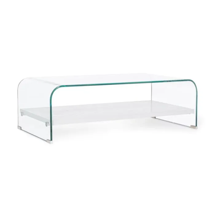 Klubska miza LINE WOOD v beli barvi je popolen kos pohištva za vašo dnevno sobo. Narejena je iz prozornega stekla debeline 12mm. Ima polico iz MDF-ja, ki je oblečena v videz lesa. Mizica je funkcionalna in visokokakovostna.