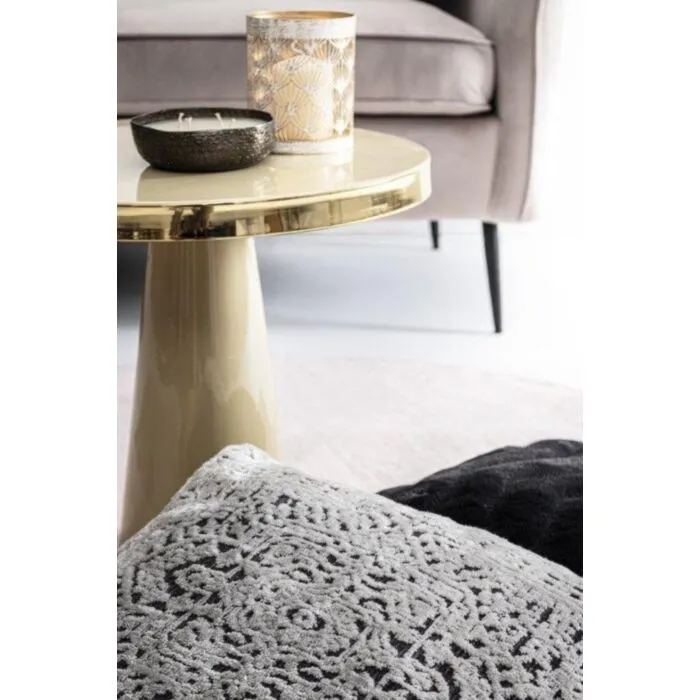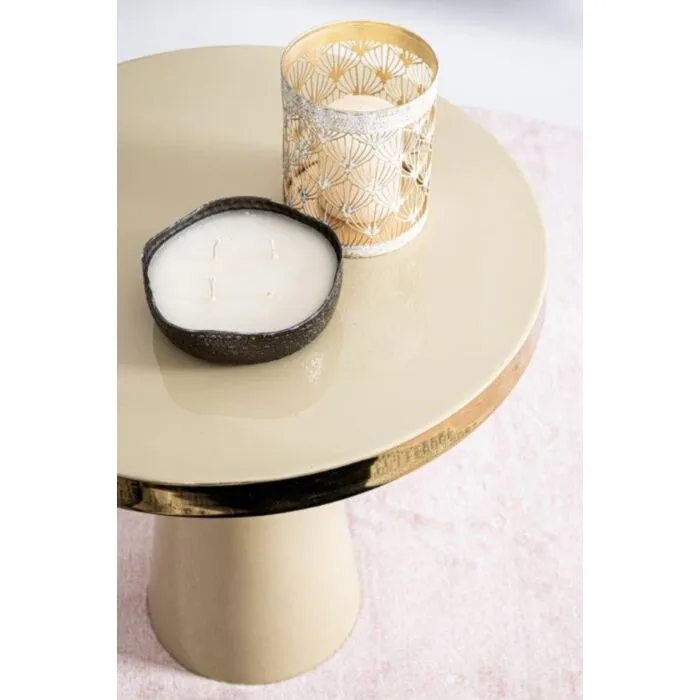 Klubska miza NANDIKA D51 taupe je visokokakovostna in elegantna mizica, ki se poda v vsak prostor. Ima kovinski okvir ter zgornji rob z medeninastim zaključkom.