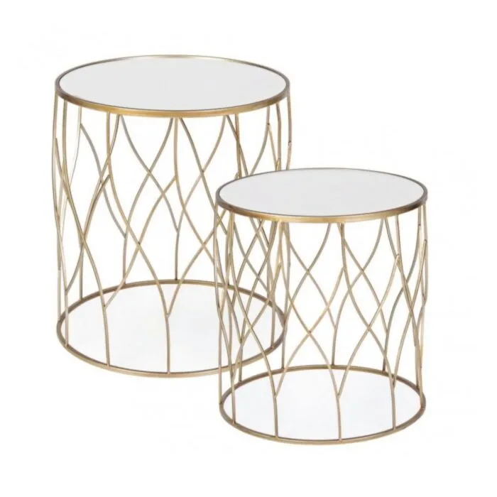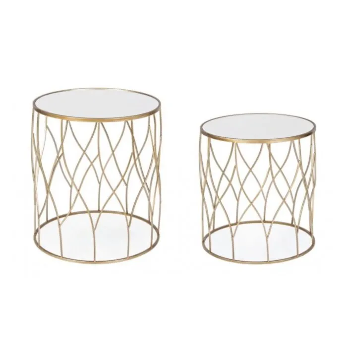Klubska miza ELENOR je sestavljena iz kovinskega ogrodja, prašno barvanega (zlata barva). Mizna plošča je iz stekla.