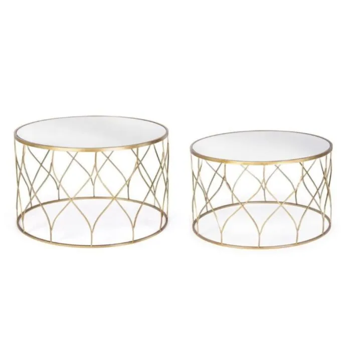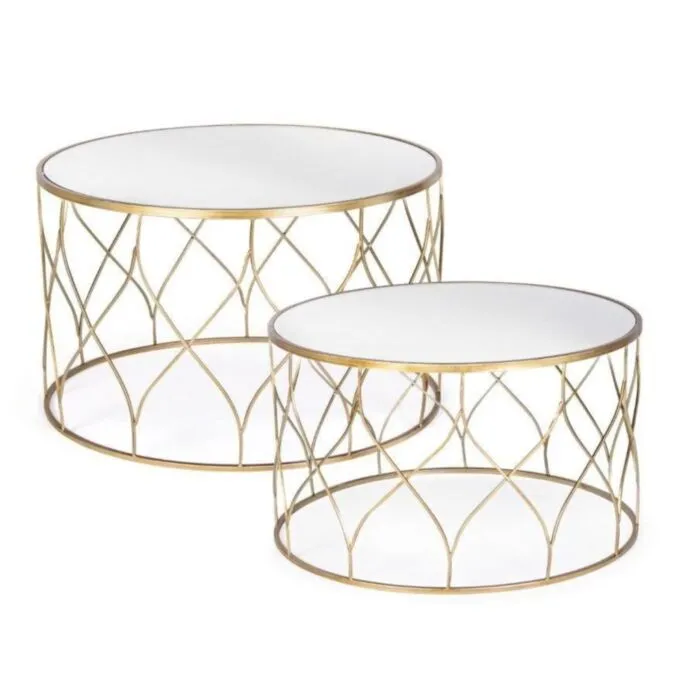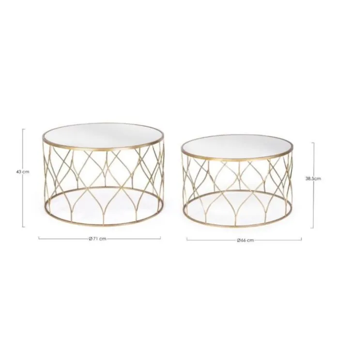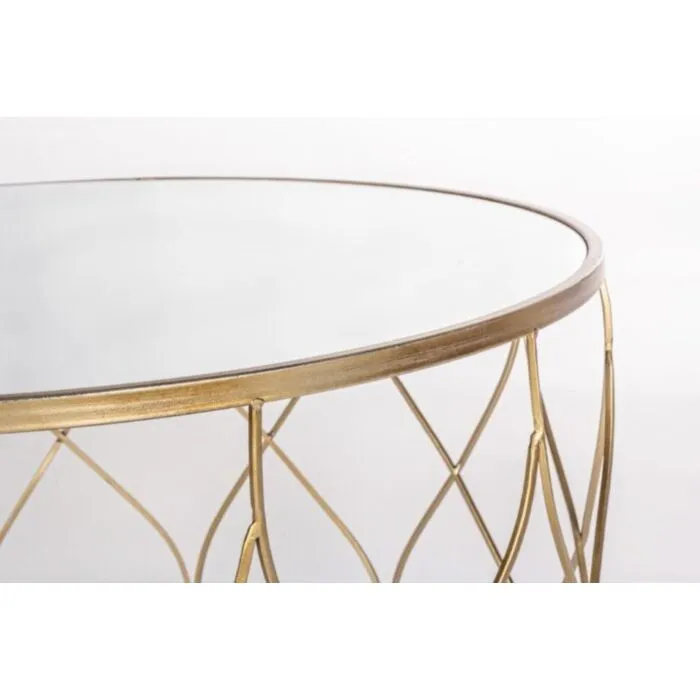 Klubska miza ELENOR je sestavljena iz kovinskega ogrodja, prašno barvanega (zlata barva). Mizna plošča je iz stekla.
