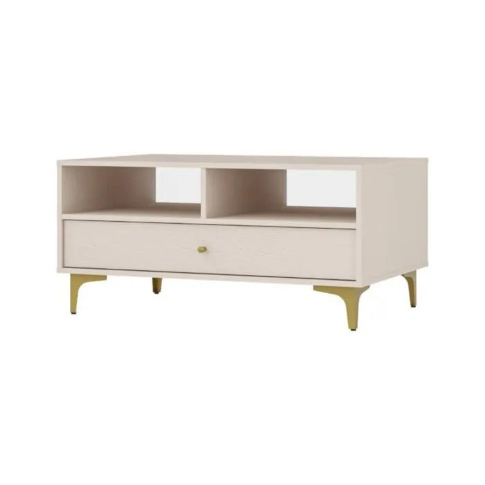 Klubska miza TOMI je prava izbira za sodobne in elegantne prostore. Narejena iz kakovostne laminirane plošče debeline 16 mm, zagotavlja trdnost in dolgotrajno uporabo. S svojimi čisto oblikovanimi frontami in ABS robovi, nudi estetsko privlačnost, ki se lepo ujema z vašim domom. Z zlatimi ročaji in nogicami prinaša pridih razkošja. Praktičen predal omogoča enostavno shranjevanje, kar mizico TOMI naredi tako funkcionalno kot privlačno.