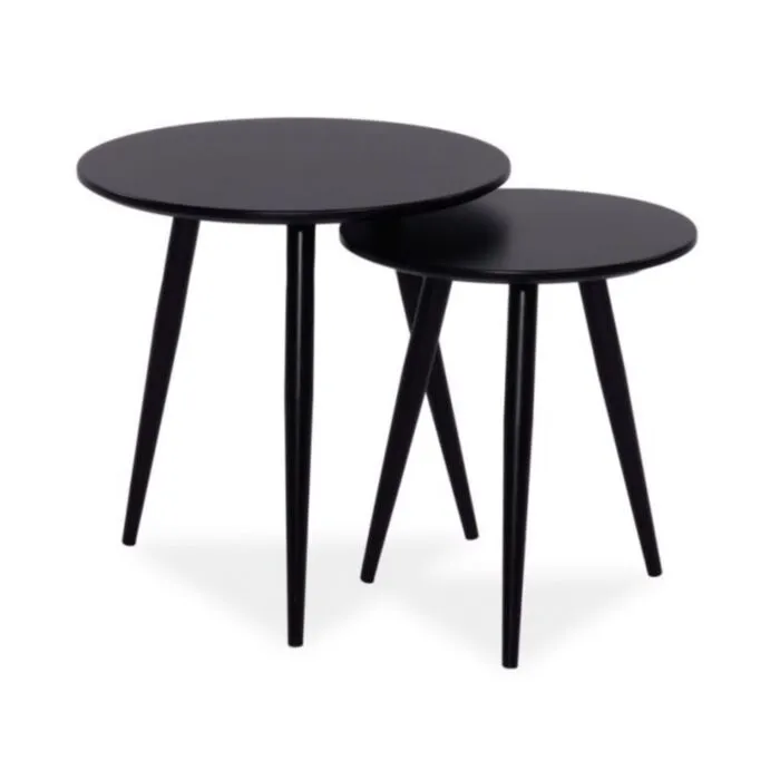 Moderna klub miza VITA 2 je kvalitetna ter stabilna in primerna za vsako dnevno sobo. V kompetu prejmete dve mizice različnih velikosti. Trenutno je miza prodajna uspešnica. Narejena je iz MDF-ja in kovine v črni barvi.