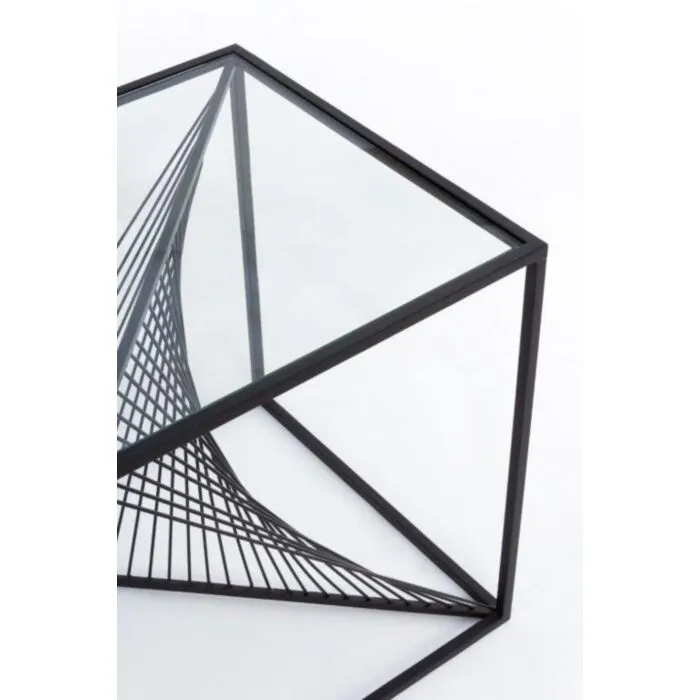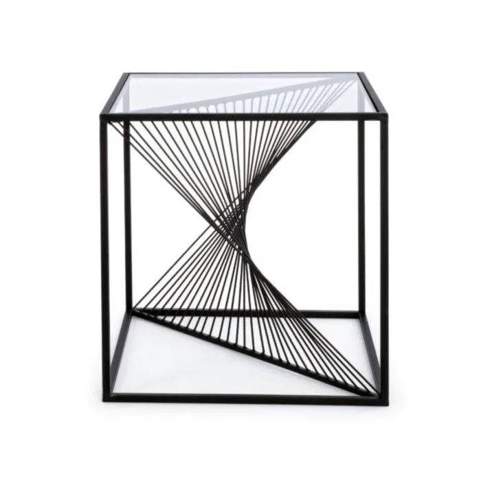 Klubska mizica ESPIRAL 48X48 ima jekleno okvirje in top iz kaljenega stekla.