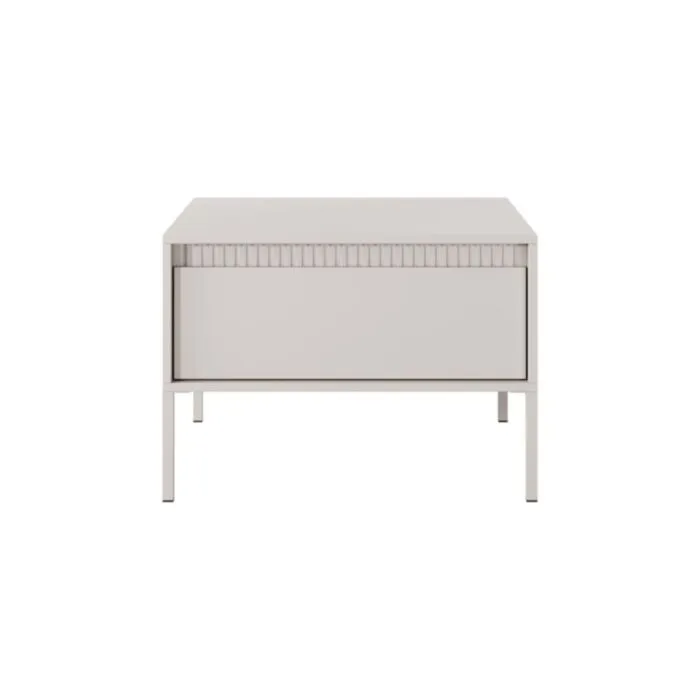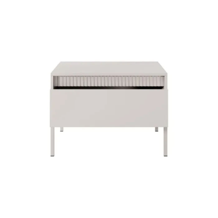 Klubska mizica FIFIJA – bež, je eleganten kos pohištva, ki popestri vaš prostor s svojim luksuznim dizajnom. Narejen je iz kakovostnih materialov v bež barvi. Izdelan je iz MDF-ja in ABS robov. Ima kovinske nogice v bež barvi. Ima mehko zapiranje. Ima poseben rebrasti dizajn, ki popestri vaš prostor.