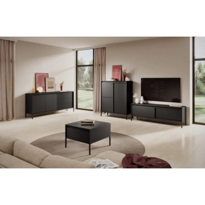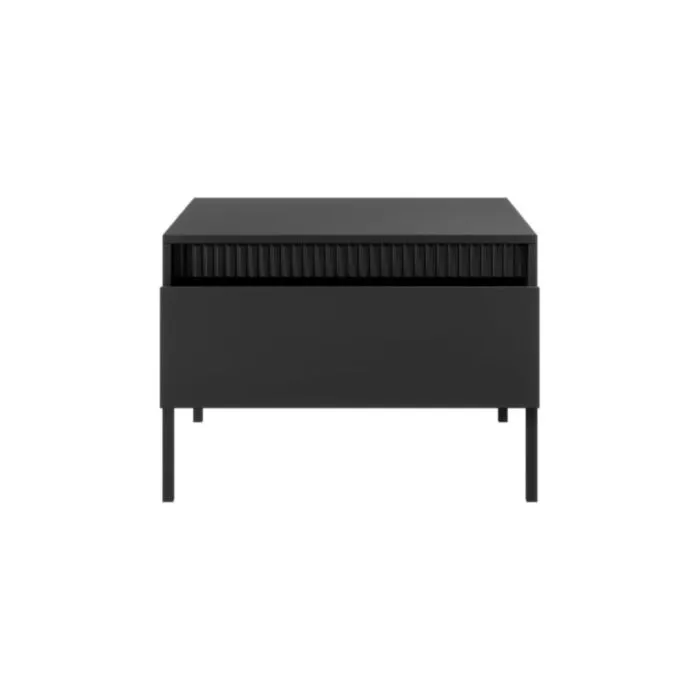 Klubska mizica FIFIJA, je eleganten kos pohištva, ki popestri vaš prostor s svojim luksuznim dizajnom. Narejen je iz kakovostnih materialov v črni barvi. Izdelan je iz MDF-ja in ABS robov. Ima kovinske nogice v črni barvi. Ima mehko zapiranje. Ima poseben rebrasti dizajn, ki popestri vaš prostor.
