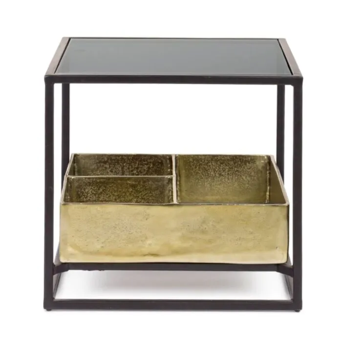 Klubska mizica MAVILA 42 x 42 je narejena iz kovine. Mizna plošča je narejena iz stekla. V spodnjem delu mizice je prostor za shranjevanje različnih stvari. Mizica je v črni barvi s kombinacijo zlate barve. Odlično se poda v vsak prostor ne glede na to ali je to dnevna soba ali kakšen drugi prostor, kjer želiste imeti kanček elegance a hkrati enostavnosti.