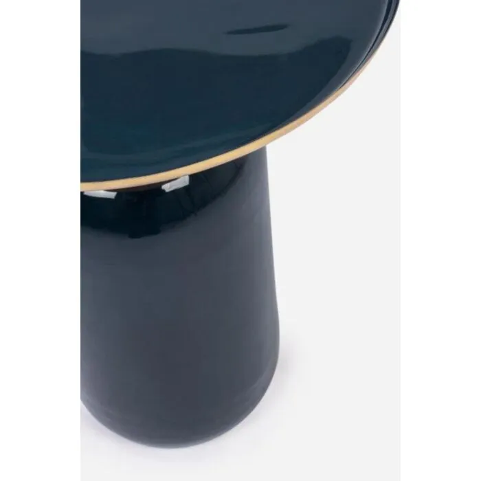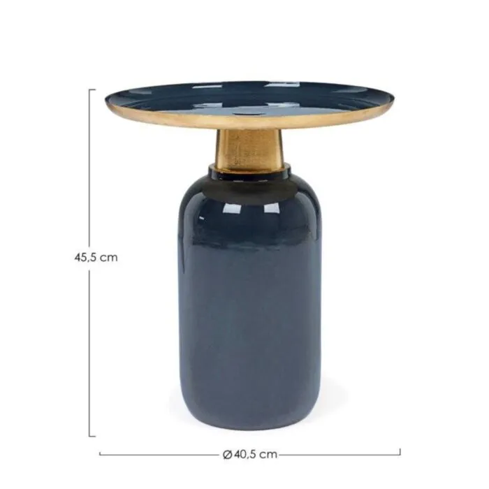 Klubska mizica NALIMA D40.5 modra ima kovinski okvir in okrasni obroč iz kovine z medeninastim zaključkom, kar zagotavlja kakovost in stabilnost. Odlično se poda v vsako moderno ter tudi preprosto notranjost.
