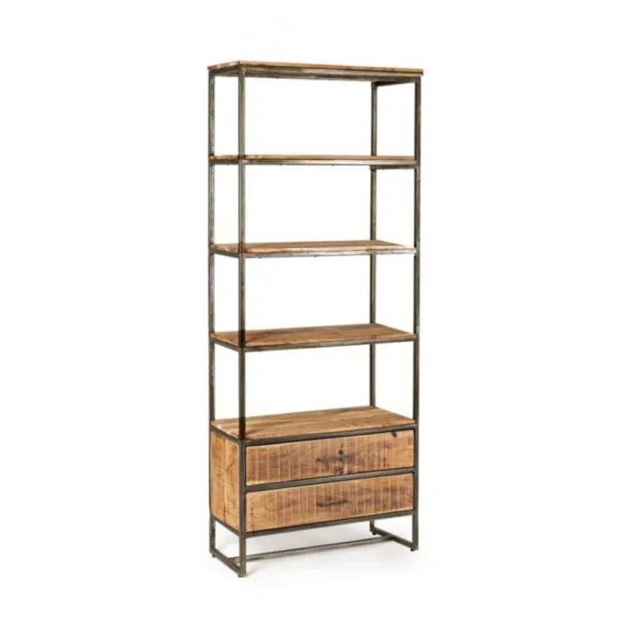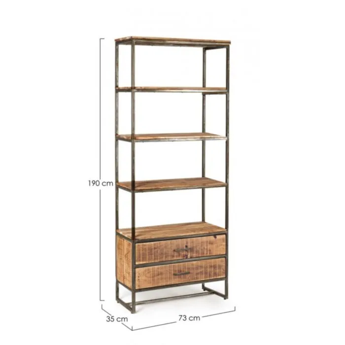 Knjižna polica ELMER 4P-2C ima kovinski okvir, police in predali pa so iz lesa. Ker je les obdelan ročno, so oblike in velikosti ki jih tvori les, samo okvirne, vsi vzorci se bodo med drugimi razlikovali.