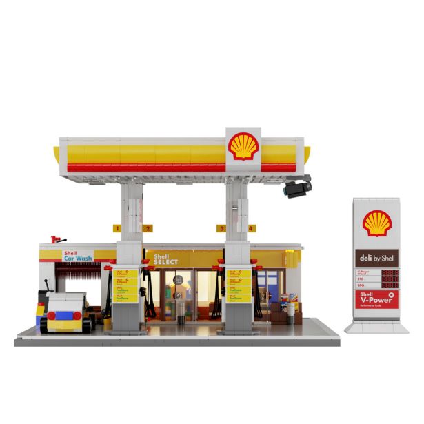 CaDA ?Shell Retail Station? – uradno licenciran komplet iz 1309 kosov z odpirajočimi se vrati, okni in zadnjo steno. Vključuje odstranljivo cev za gorivo in USB osvetlitev. Srednje zahtevno, primerno za starost 14+, ikonična rumeno-rdeča barva.