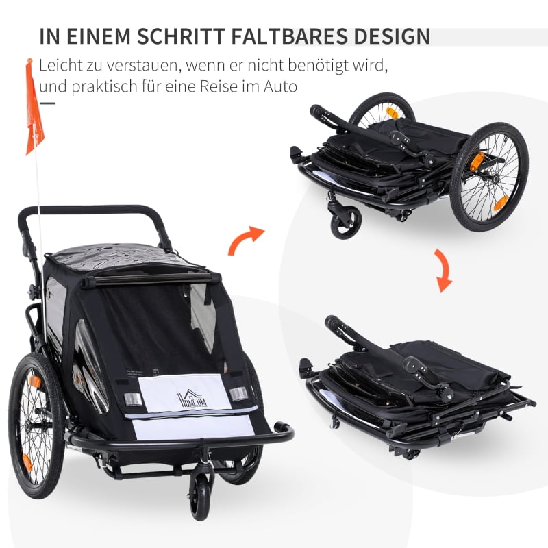 Funkcija vozička – prikolica vključuje posebno kolo in ročaj, s katerima jo lahko preoblikujete v praktičen voziček