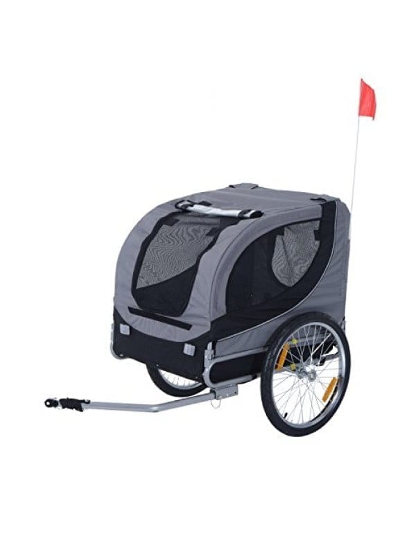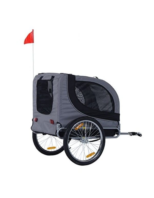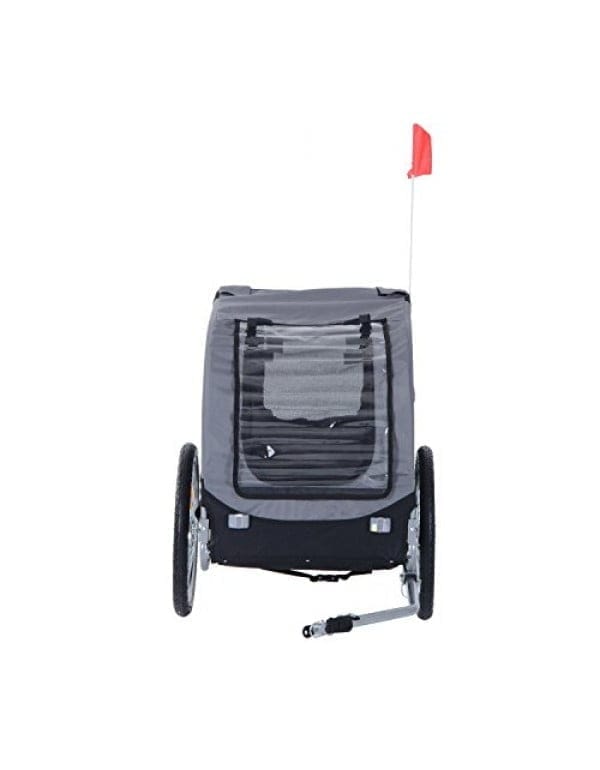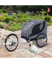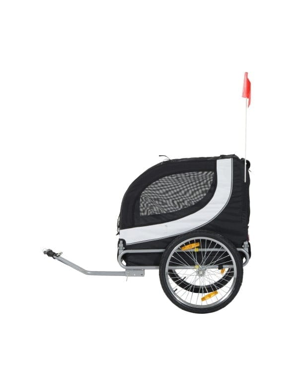 Pawhut kolesarska prikolica za pse je zvest spremljevalec za ljudi in živali. Vaš pes lahko preprosto vstopi v prikolico. Dostop je možen tako na sprednji kot na zadnji strani. Vodoodbojna tkanina Oxford ščiti vašega psa pred UV žarki, mreža proti komarjem pa pred nadležnimi žuželkami.