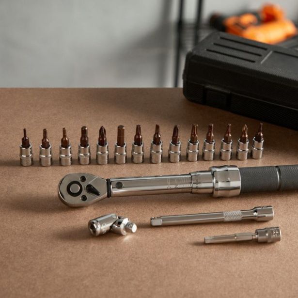 VonHaus 19-delni set ročnega orodja za kolo je vzdržljiv in natančen komplet, ki vključuje momentni ključ z razponom 2-20 Nm za enostavno namestitev komponent. Zagotovljena visoka kakovost in zanesljivost orodij s certifikatom kalibracije. Vzmetni nastavljivi obročki omogočajo varno uporabo