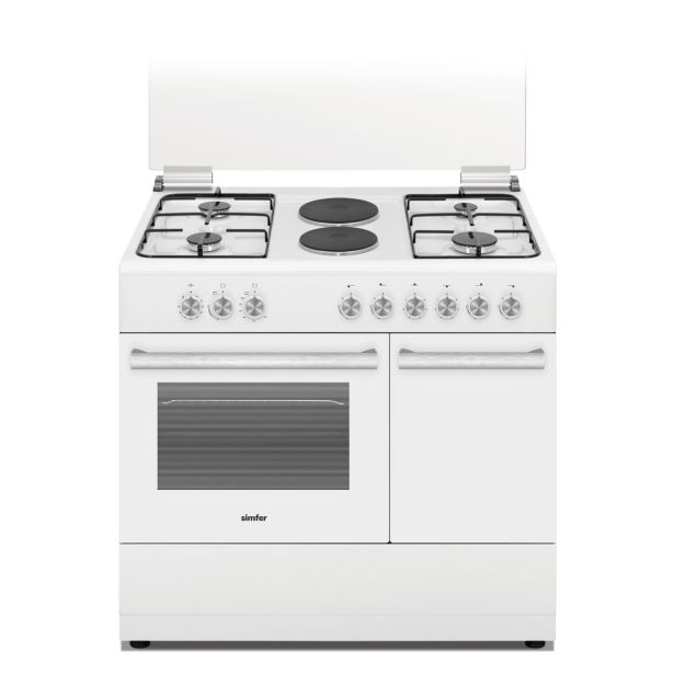 Kombinirani štedilnik, širine 90 vam omogoča kuhanje na 4 plinskimih gorilnikih in 2 električnima ploščama. Pečica je ventilatorska s kapaciteto 56l. Ima poseben prostor za jeklenko. Prirejen je za jeklenko in opcijsko za zemeljski plin. Električni vžig gorilnikov.