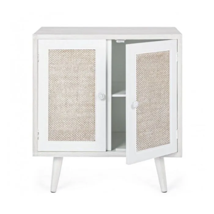 Komoda 2A MONTIEL je eleganten kos pohištva, ki popestri vaš prostor. Njen poseben dizajn vas bo navdušil, saj prinese  vašemu prostoru eleganco in prefinjenost. Narejena je iz MDF, tkanine in kakovostne kovine.