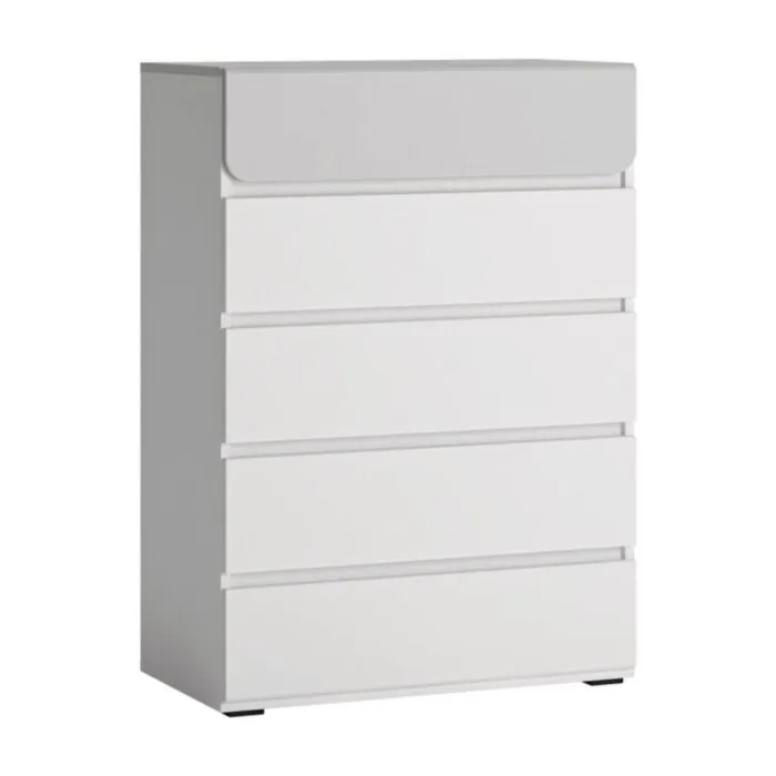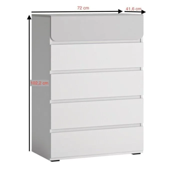 Komoda ALBA 2 je eleganten kos pohištva, ki popestri vaš prostor. Njen poseben dizajn vas bo navdušil, saj prinese  vašemu prostoru eleganco in prefinjenost. Ima 5 prostornih predalov za shranjevanje.