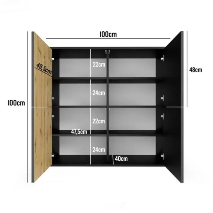 D: 100 cm x G: 49,5 cm x V: 100 cm