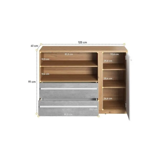 D: 125 cm x G: 41 cm x V: 91 cm