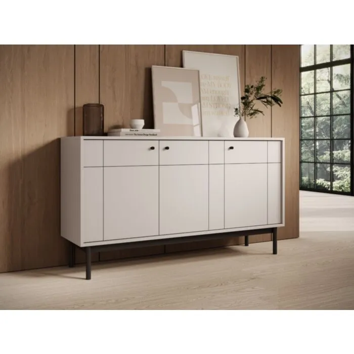 Komoda JAPONI 154 kašmir je elegantna in preprosta. Odlično se poda v vsak dnevni prostor. Narejena je iz visokokakovostnih materialov, kar zagotavlja trdnost in dolgo življenjsko dobo. Ima ABS robove, ki zagotavljajo večjo odpornost proti udarcem, vlagi in obrabi ter podaljšujejo njeno življenjsko dobo. ABS robovi ne le ščitijo pred poškodbami, ampak poskrbijo tudi za lepši in elegantnejši videz pohištva. Zaradi svoje oblike in visokokakovostnih materialov je trpežna in vzdržljiva. Odporna je na praske, udarce in obrabo. Je enostavna za vzdrževanje, saj je površina preprosta za čiščenje in negovanje. Estetsko se poda v vsak prostor ter ima dobro odpornost na madeže in vlago.