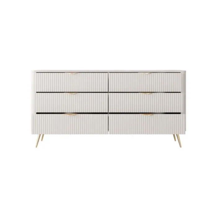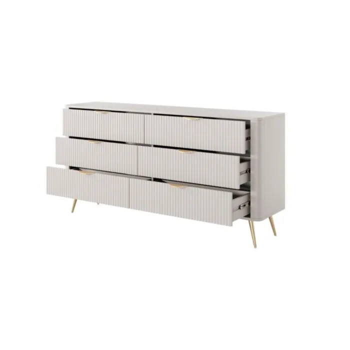 Elegantna in moderna komoda LILJA  je eleganten kos pohištva, ki popestri vaš prostor. Njen poseben dizajn vas bo navdušil, saj prinese  vašemu prostoru eleganco in prefinjenost. Narejena je iz kovine in MDF-ja v beige barvi.