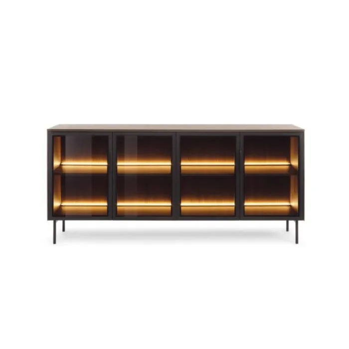 ABS robovi ne le ščitijo pred poškodbami, ampak poskrbijo tudi za lepši in elegantnejši videz pohištva. Ima kovinske noge v črni barvi. Kovinske noge zagotavljajo dodatno stabilnost. Komoda ima tudi LED osvetlitev, kar pripomore k njeni funkcionalnosti in eleganci.