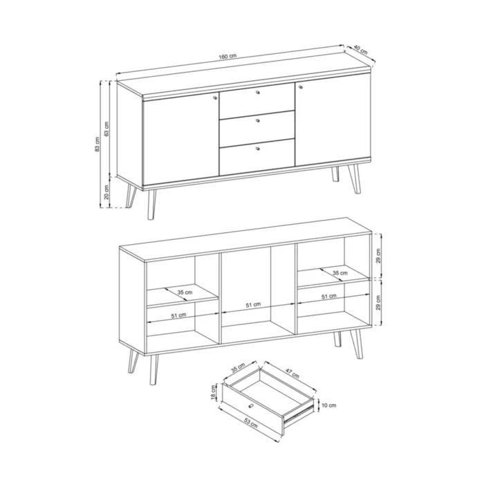 D: 160 cm x G: 40 cm x V: 83 cm