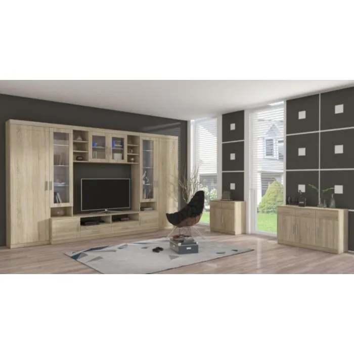 Komoda PAR 3 je kos pohištva sodobnih linij v najmodernejših odtenkih lesa. Ima tri krila; troje omaric z vrati in tri predalnike.