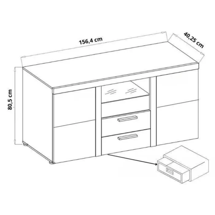 D: 156,4 cm x V: 80,5 cm x G: 40,25 cm