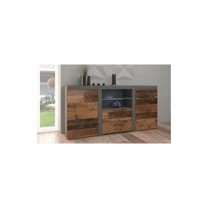 Komoda RUBA 5 je narejena iz kvalitetne laminirane plošče v barvi temnega hrasta. Vsebuje dva predala ter dve omarici. Primerna je za dnevne sobe in jedilnice.