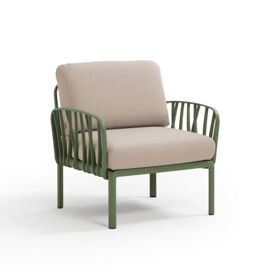 Fotelj KOMODO Poltrona v barvi AGAVE. Poljubno ga lahko kombinirate z različnimi elementi iz serije KOMODO, ter tako sestavite svojo poljubno garnituro. Zagotovljena vrhunska kakovost in udobje.