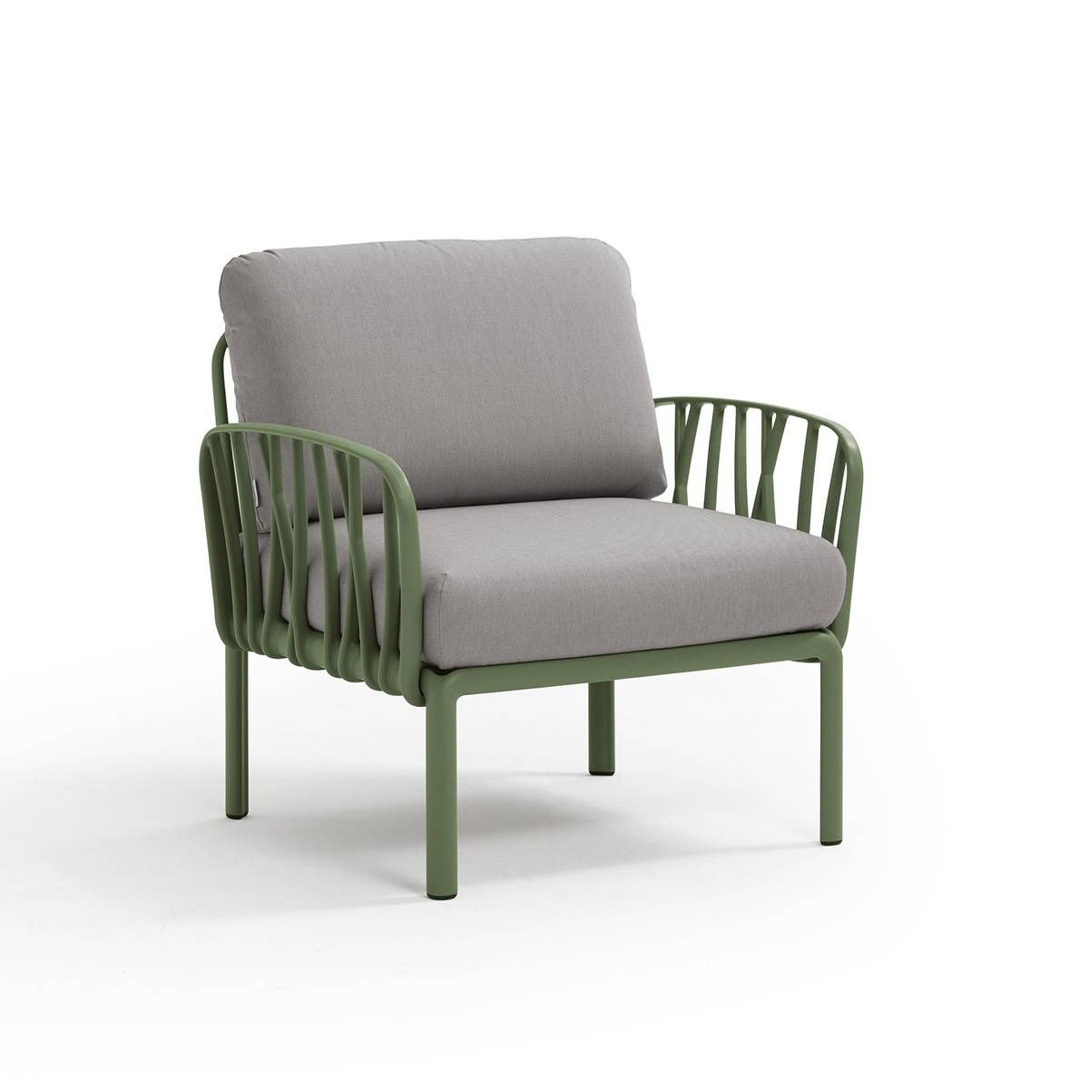 Fotelj KOMODO Poltrona v barvi AGAVE. Poljubno ga lahko kombinirate z različnimi elementi iz serije KOMODO, ter tako sestavite svojo poljubno garnituro. Zagotovljena vrhunska kakovost in udobje.