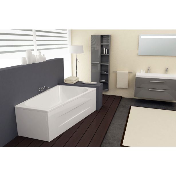 Kopalna asimetrične oblike, izdelana iz litega sanitarnega akrila. Z oblogo. Desna izvedba. Sanitarna armatura, dekorativni izdelki in pohištvo niso vključeni v obseg dobave.