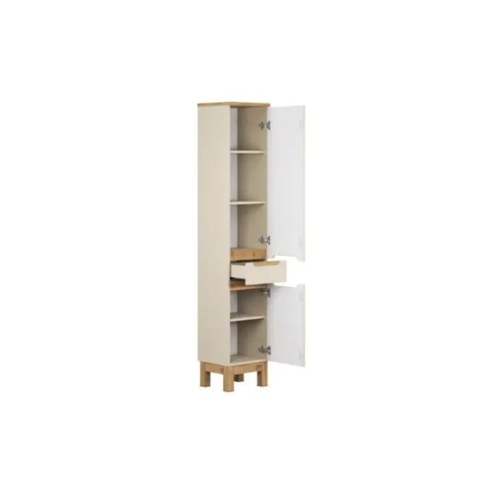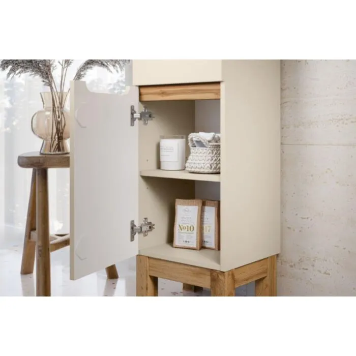 Kopalniški blok BORI 60 je hkrati enostaven in eleganten. Elementi so nežne kašmir barve v kombinaciji s hrastom, to je popolna kombinacija, ki se poda vsakemu stilu kopalniškega interierja. Izdelan je iz laminirane ter MDF plošče. Vsebuje mehko zapiranje.