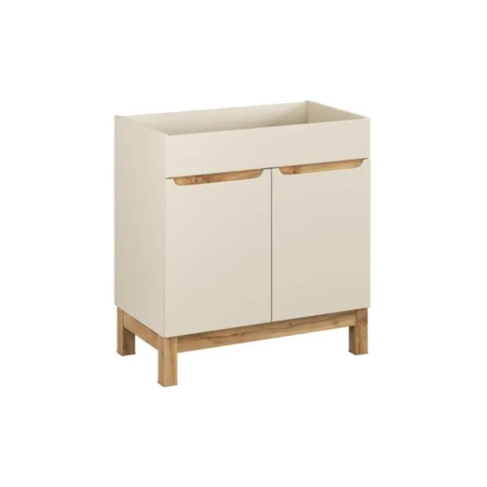 Kopalniški blok BORI 80 2 je hkrati enostaven in eleganten. Elementi so nežne kašmir barve v kombinaciji s hrastom, to je popolna kombinacija, ki se poda vsakemu stilu kopalniškega interierja. Izdelan je iz laminirane ter MDF plošče. Vsebuje mehko zapiranje.