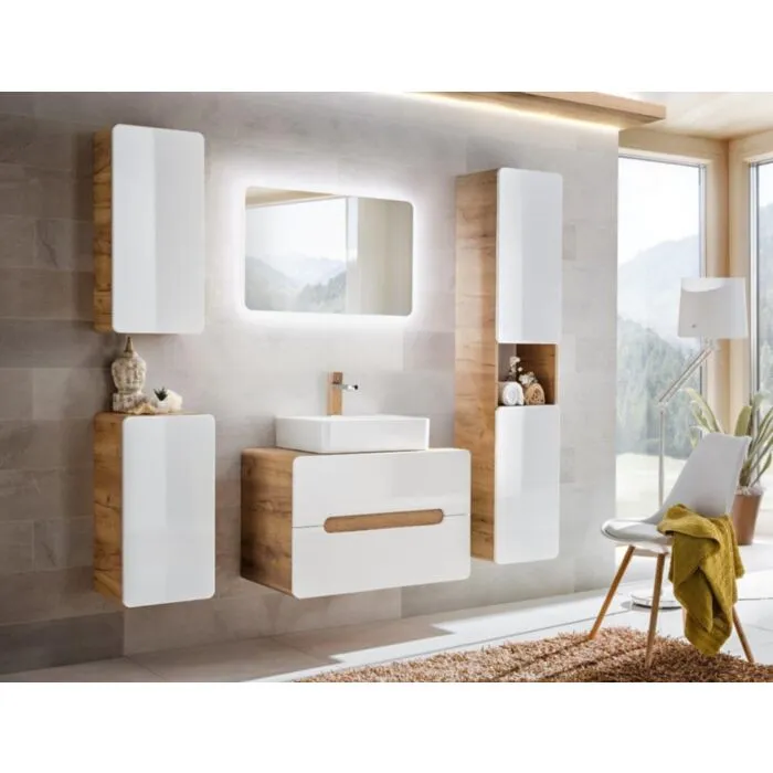 Kopalniški blok BUBA 60 SPECIAL je odlične kvalitete, narejen iz kakovostnih materialov. Vsebuje LED ogledalo, umivalnik, omarico pod umivalnikom, visoko visečo omaro ter dve mali viseči omarici. Kopalniški blok ima mehko zapiranje in keramični umivalnik.