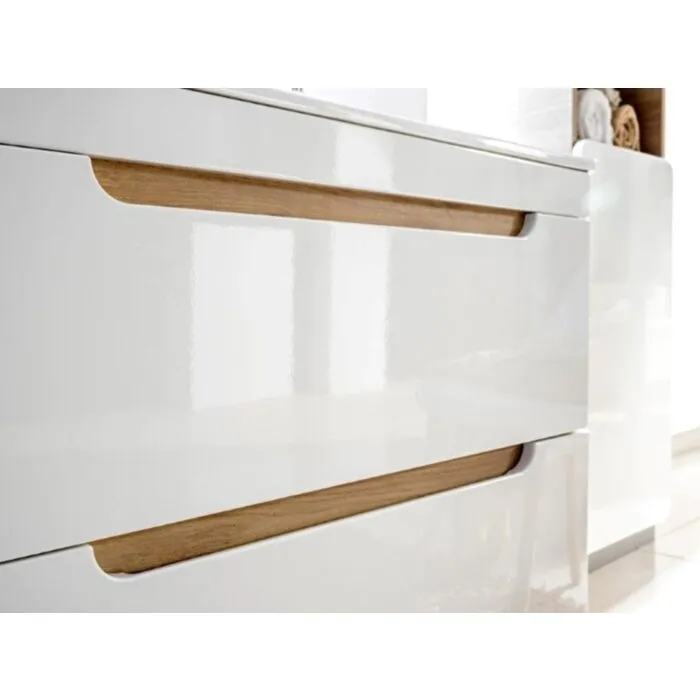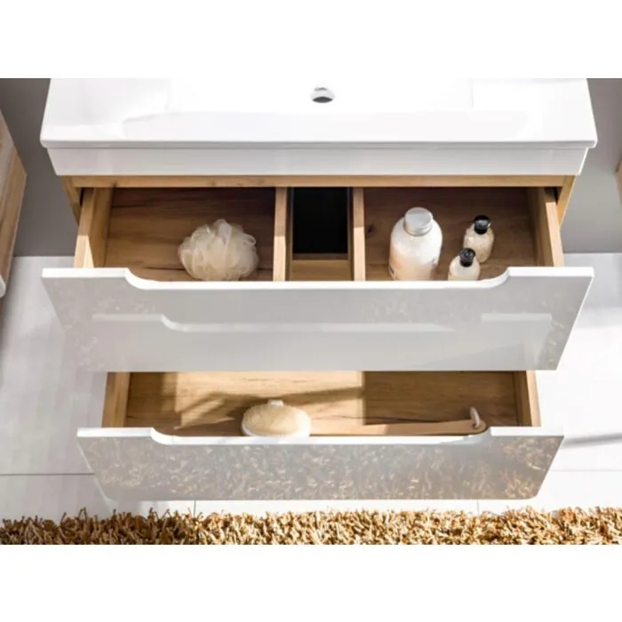Kopalniški blok BUBA 80 je odlične kvalitete, narejen iz kakovostnih materialov. Vsebuje LED ogledalo, umivalnik, omarico pod umivalnikom, visoko visečo omaro ter dve mali viseči omarici. Kopalniški blok ima mehko zapiranje in keramični umivalnik.