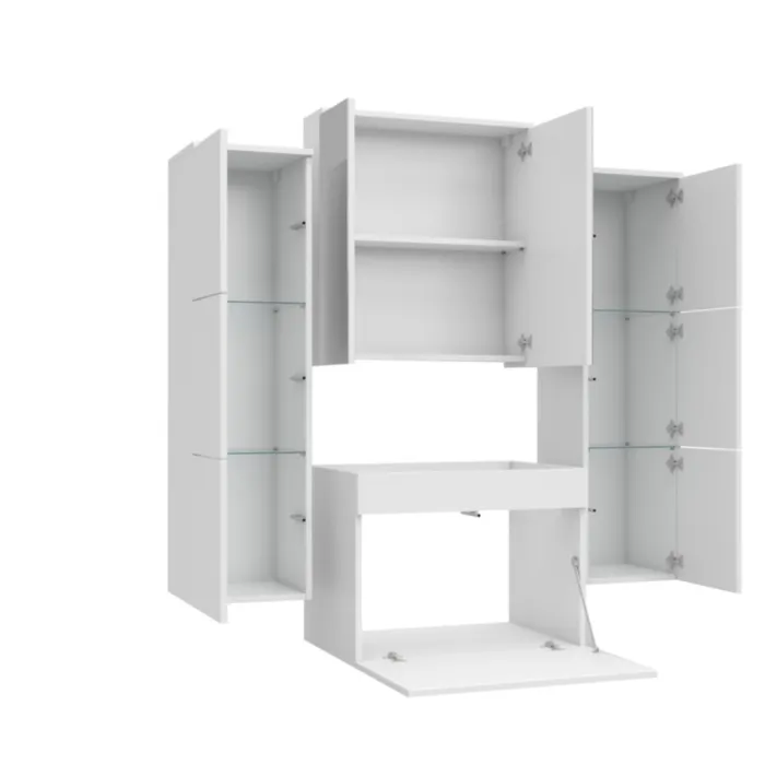 Kopalniški blok OTO 3 je odlične kvalitete, narejen iz kakovostnih materialov. Vsebuje omarico z ogledalom, omarico pod umivalnikom in umivalnik, ter dve veliki viseči omarici. Odpiranje omaric je na postisk.