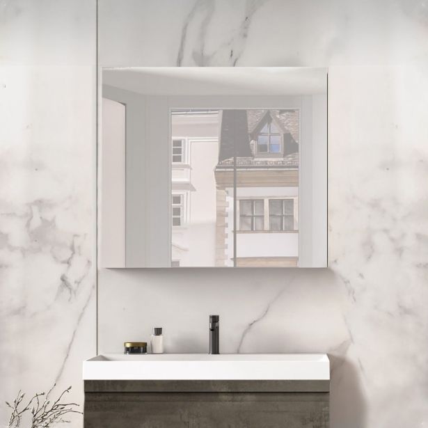 Toaletna omarica ima na prednjem delu vrat ogledalo, ki na spodnjem delu presega korpus omarice, kar nam omogoča enostavno odpiranje in zapiranje. Sami tečaji vrat so lahko nameščeni na levi ali desni strani, tako da lahko prilagodite odpiranje kopalniške omarice po svojih željah.
