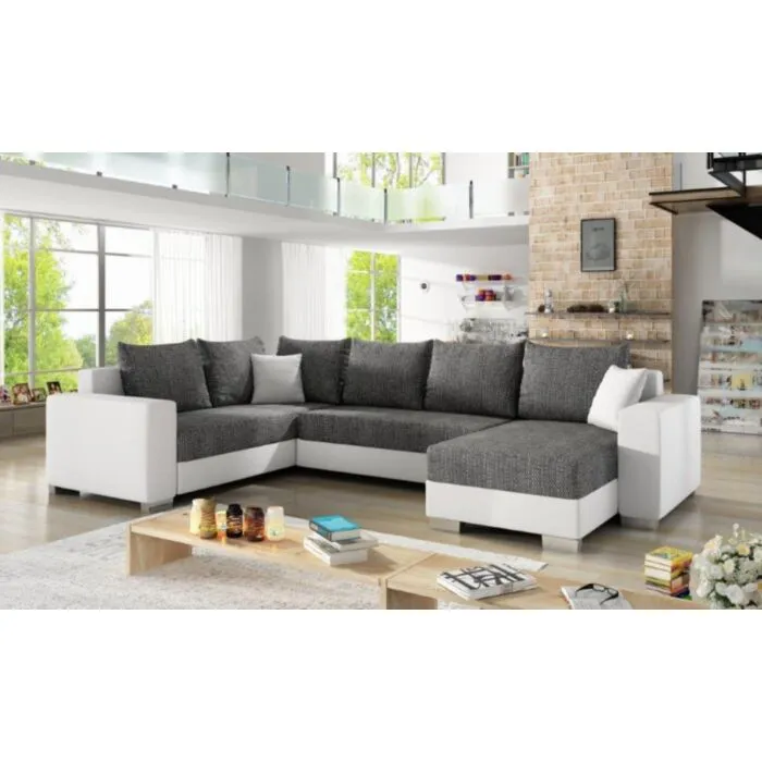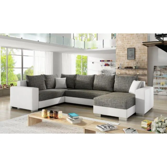 Kotna sedežna garnitura ALFRED 2 je kotna sedežna garnitura, katera je narejena iz umetnega usnja in blaga. Garnitura se raztegne v ležišče ter vsebuje zaboj za shranjevanje posteljnine. Sedežna je vzmetena z Bonell vzmetmi. Garnitura ima levi ali desni kot, katerega morate izbrati. Moderne linije vas bodo prepričale.