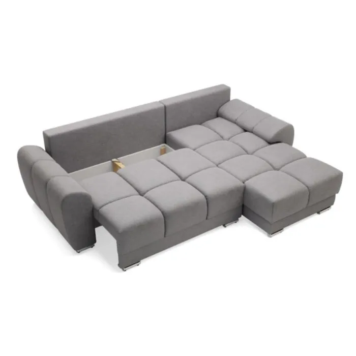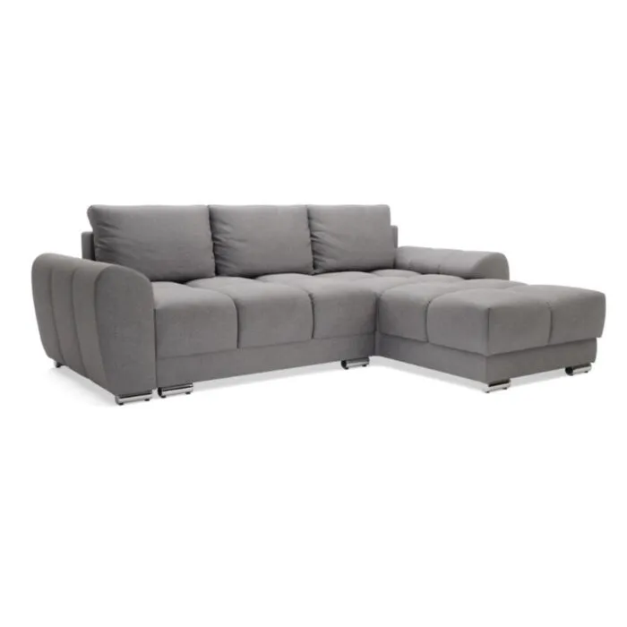 Kotna sedežna garnitura ARIELA je narejena iz kvalitetne tkanine blaga in zagotavlja maksimalno udobje. Sedišče garniture je vzmeteno z valovitimi vzmetmi. Prav tako je praktična, saj se raztegne v dodatno ležišče. Nogice ima krom srebrne. Sedežni ni potrebno določiti kota saj je univerzalna, lahko jo postavite levo ali desno.