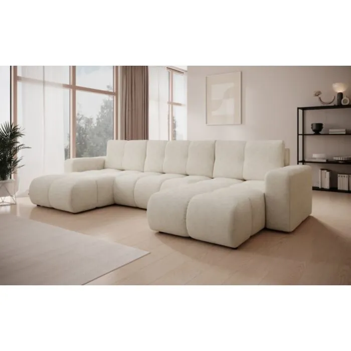 Kotna sedežna garnitura AURELIA je modernega dizajna. S svojim elegantnim videzom se bo podala v vsak prostor. Sedežna je praktična za uporabo saj se raztegne v dodatno ležišče, ter vsebuje zaboj za shranjevanje. Garnitura AURELIA nudi udobje, s svojo mehko tkanino. Odlično se poda v vsako dnevno sobo, saj je elegantna in moderna. Sedežna je univerzalna, kar pomeni, da ji ni potrebno posebi določati kota.