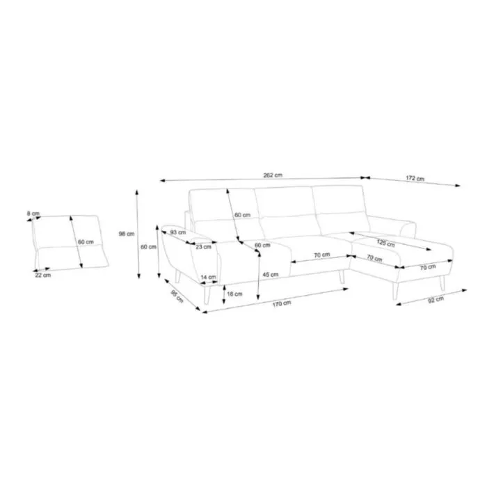 – D: 262 cm x G: 172 cm x V: 98 cm