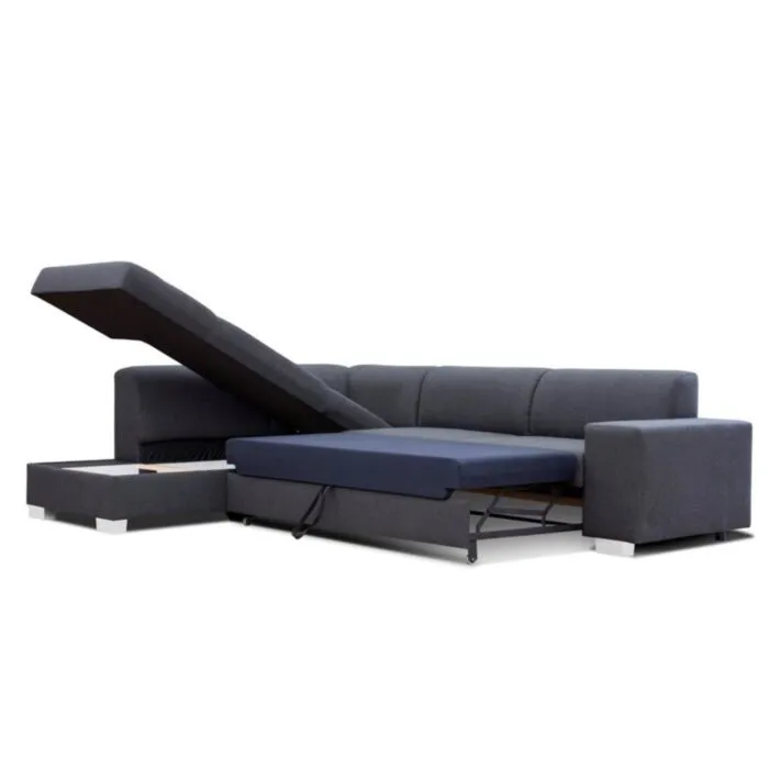 Kotna garnitura DEJAN je kotna sedežna garnitura, katera je narejena iz vrhunskih materialov. Sedežna se raztegne v ležišče z mehanizmom delfin, ter vsebuje zaboj za shranjevanje. Garnitura ima levi ali desni kot, katerega morate izbrati. Vzmetena je z valovitimi vzmetmi.