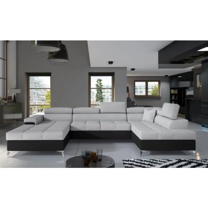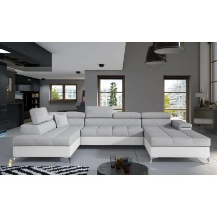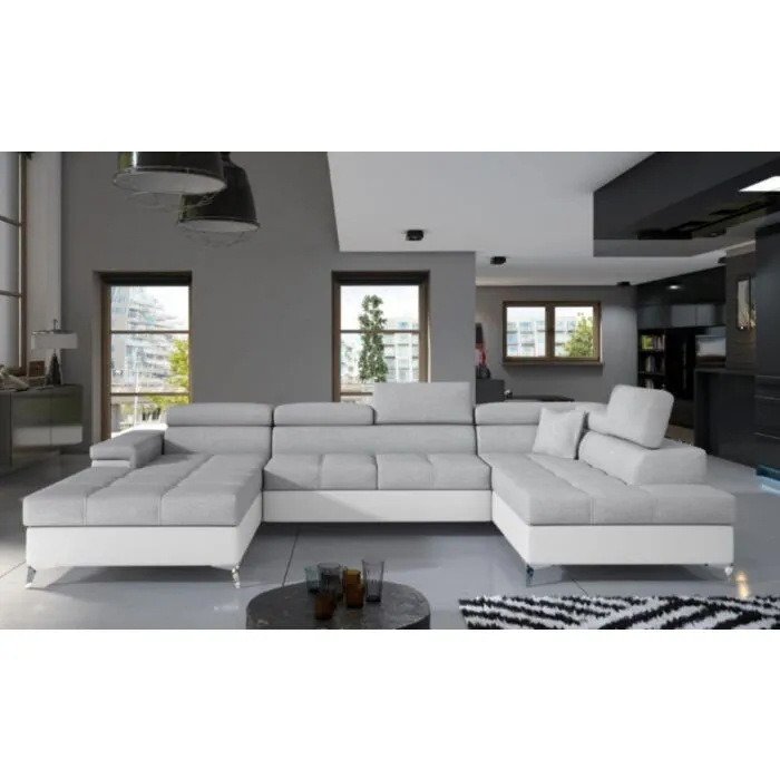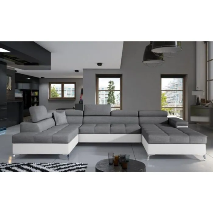 Kotna garnitura EDVARD 2 je narejena iz kvalitetne tkanine v kombinaciji z umetnim usnjem. Garnitura je vzmetena z valovitimi vzmetmi in se lahko raztegne v ležišče. Sedežna ima zaboj za posteljnino in nastavljive vzglavnike. Moderne linije sedežne garniture vas bodo prepričale.