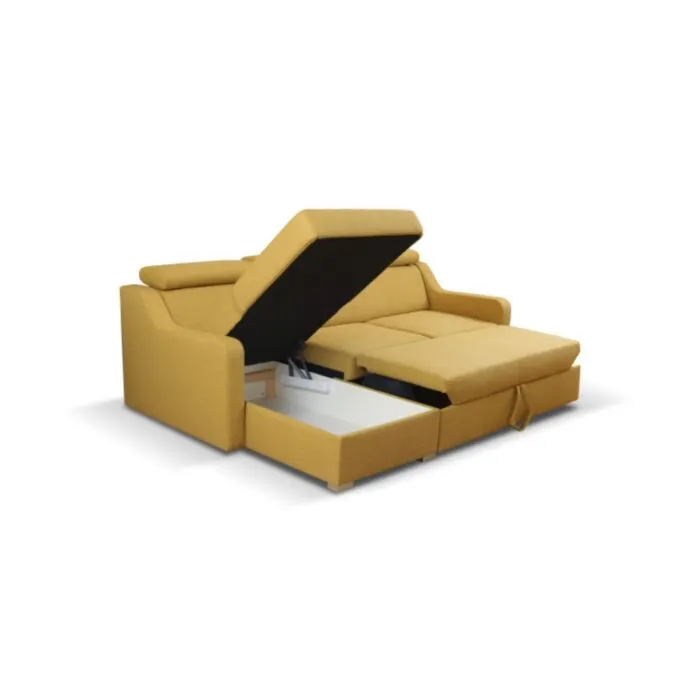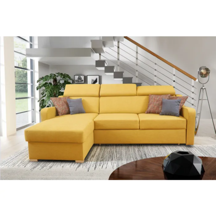 Kotna garnitura ELI je kotna sedežna garnitura, katera je narejena iz rumenega blaga. Garnitura se raztegne v ležišče in ima zaboj za posteljino. Sedežna je vzmetena z valovitimi vzmetmi. Garnitura je desna ali leva postavitev. Vsebuje nastavljive vzglavnike.