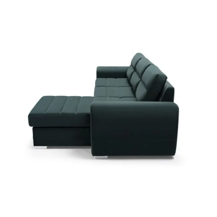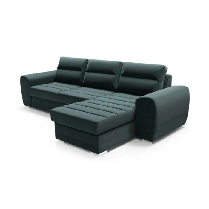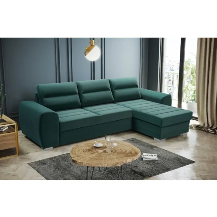 Kotna sedežna garnitura EVEREST je praktična ter udobna. Na voljo je v zeleni barvi oblazinjenja. Sedežni je potrebno določiti levi ali desni kot. Vzmetena je z valovitimi vzmetmi. Sedežna se raztegne v dodatno ležišče z mehanizmom delfin. Prav tako vsebuje zaboj za shranjevanje posteljnine.