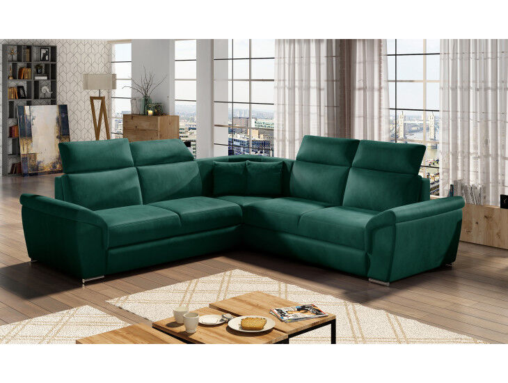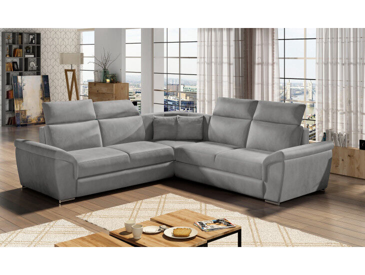 Kotna sedežna garnitura FERDO 4 je kotna sedežna garnitura, katera je narejena iz kvalitnetnega velvet blaga. Garnitura se raztegne v ležišče z delfin mehanizmom. Ima predal za shranjevanje in štiri nastavljive vzglavnike. Garnituri pripadata tudi dve okrasni blazini. Sedežna je vzmetena z valovitimi vzmetmi. Garnitura je univerzalna zato jo lahko postavite levo ali desno. Moderne linije vas bodo prepričale.